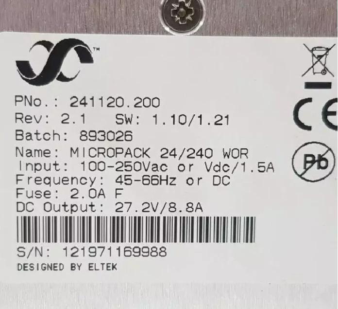 Eltek Micropack Rectifier Module 24V/240W (شماره قطعه: 241120.200)